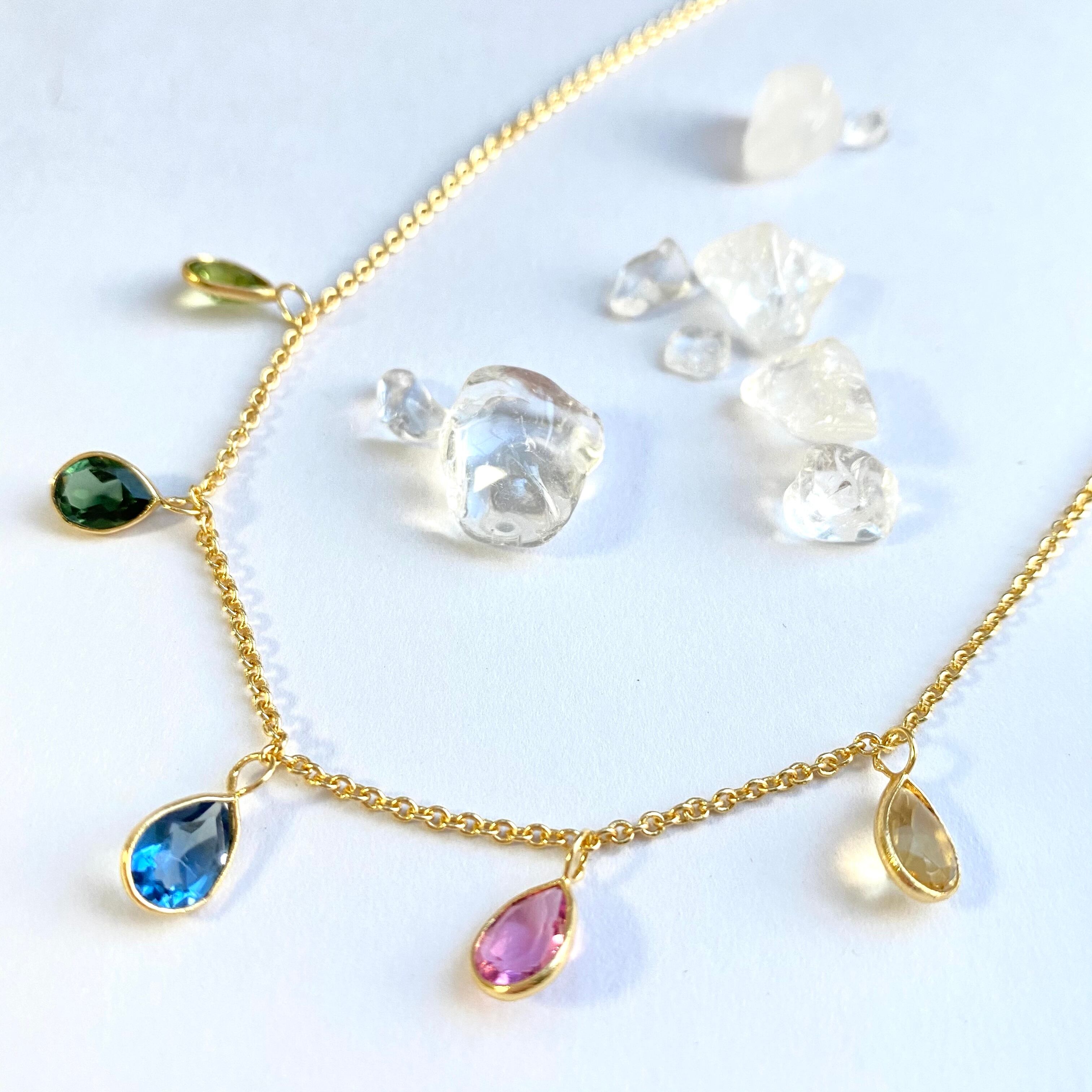 妖精がお花のエキスやスイーツを集めてジュエリーを作ったお話からデザインしたネックレスです。